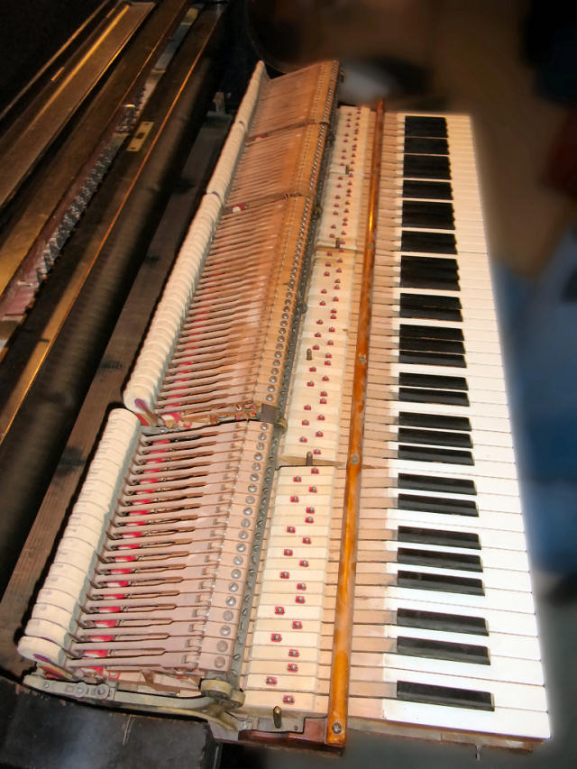 The piano is in very used condition and would be an excellent candidate for rebuilding and refinishing. If the buyer wishes, arrangements can be made to have the piano moved to the rebuilders of their choice (or they may make their own arrangements to have the piano picked up).
